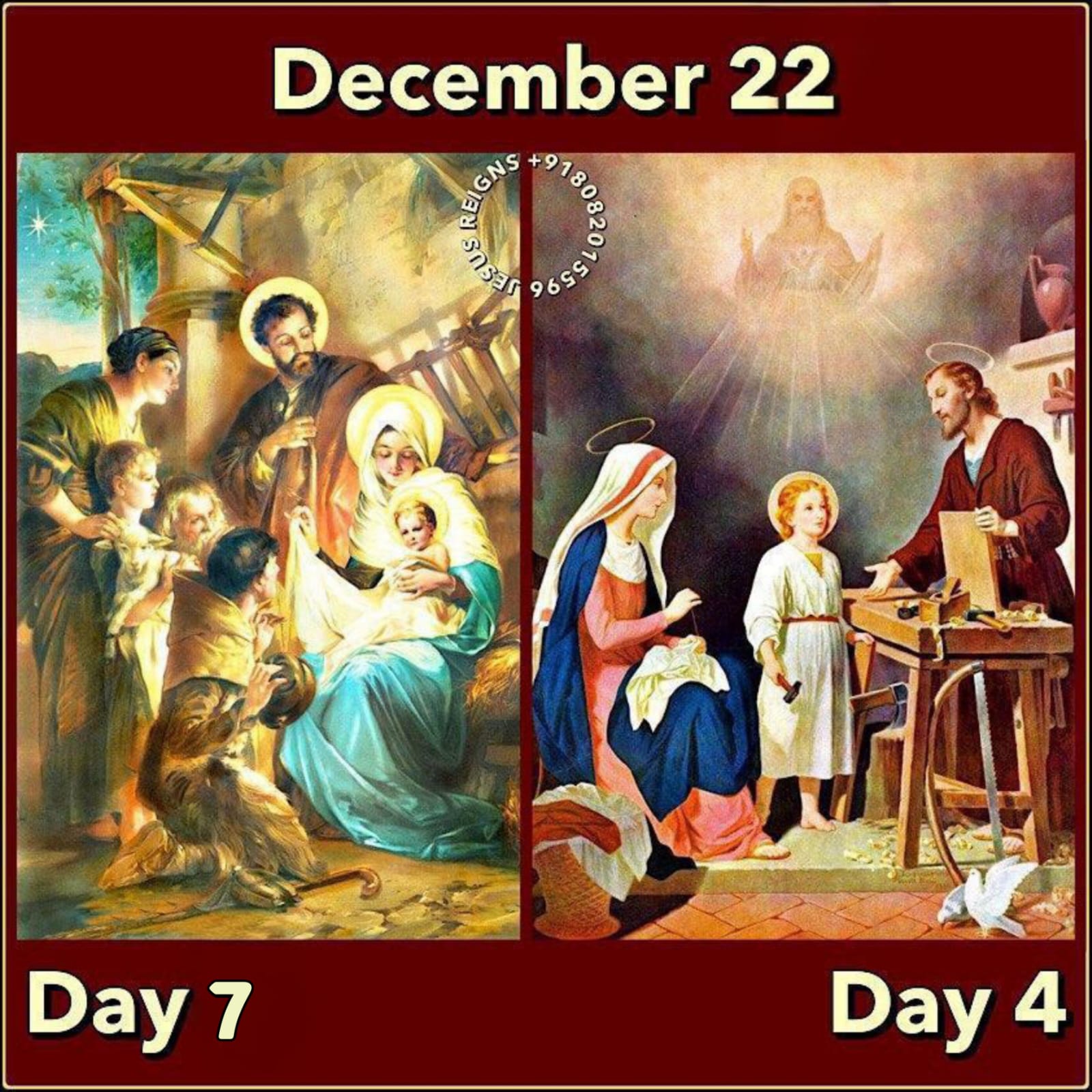 PRAYER: Heavenly Father, your grace reaches us through the hands of your most precious Son, Jesus. His response to the prayers of Mary and Joseph are assured, so we ask for their prayers during this Novena. Lord, send light to our understanding, inspiration to our decisions, and the fire of pure love to our hearts, so that we will respond to the blessing of your grace in our lives which comes through the prayers of the Holy Family. And you, our Guardian Angels and all the Saints in Heaven, intercede for us so that we may honour Jesus, Mary, and Joseph by the way we live. Help us to find ways to live as they did and to avoid looking for excuses for not changing our ways. Through this Novena in honour of the Holy Family, place in us the desire to pursue and imitate the virtues of the Holy Family and to accept your answer to our requests as your will for our lives. Amen.