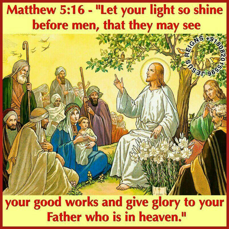 13 "You are the salt of the earth; but if salt has lost its taste, how shall its saltiness be restored? It is no longer good for anything except to be thrown out and trodden under foot by men. 14 You are the light of the world. A city set on a hill cannot be hid. 15 Nor do men light a lamp and put it under a bushel, but on a stand, and it gives light to all in the house. 16 Let your light so shine before men, that they may see your good works and give glory to your Father who is in heaven."