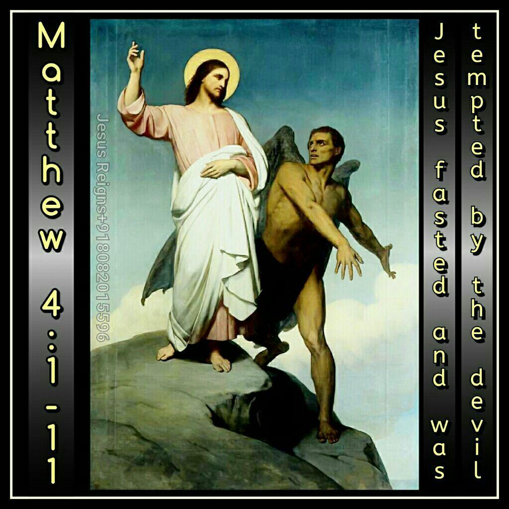 1 Then Jesus was led up by the Spirit into the wilderness to be tempted by the devil. 2 And he fasted forty days and forty nights, and afterward he was hungry. 3 And the tempter came and said to him, "If you are the Son of God, command these stones to become loaves of bread." 4 But he answered, "It is written, `Man shall not live by bread alone, but by every word that proceeds from the mouth of God.'" 5 Then the devil took him to the holy city, and set him on the pinnacle of the temple, 6 and said to him, "If you are the Son of God, throw yourself down; for it is written, `He will give his angels charge of you,' and `On their hands they will bear you up, lest you strike your foot against a stone.'" 7 Jesus said to him, "Again it is written, `You shall not tempt the Lord your God.'" 8 Again, the devil took him to a very high mountain, and showed him all the kingdoms of the world and the glory of them; 9 and he said to him, "All these I will give you, if you will fall down and worship me." 10 Then Jesus said to him, "Begone, Satan! for it is written, `You shall worship the Lord your God and him only shall you serve.'" 11 Then the devil left him, and behold, angels came and ministered to him.