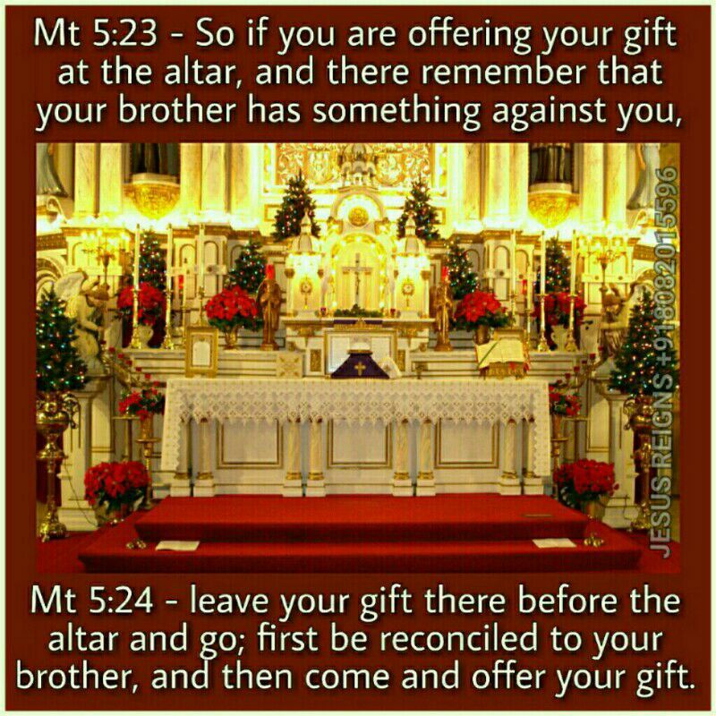 20 For I tell you, unless your righteousness exceeds that of the scribes and Pharisees, you will never enter the kingdom of heaven. 21 "You have heard that it was said to the men of old, `You shall not kill; and whoever kills shall be liable to judgment.' 22 But I say to you that every one who is angry with his brother shall be liable to judgment; whoever insults his brother shall be liable to the council, and whoever says, `You fool!' shall be liable to the hell of fire. 23 So if you are offering your gift at the altar, and there remember that your brother has something against you, 24 leave your gift there before the altar and go; first be reconciled to your brother, and then come and offer your gift. 25 Make friends quickly with your accuser, while you are going with him to court, lest your accuser hand you over to the judge, and the judge to the guard, and you be put in prison; 26 truly, I say to you, you will never get out till you have paid the last penny."