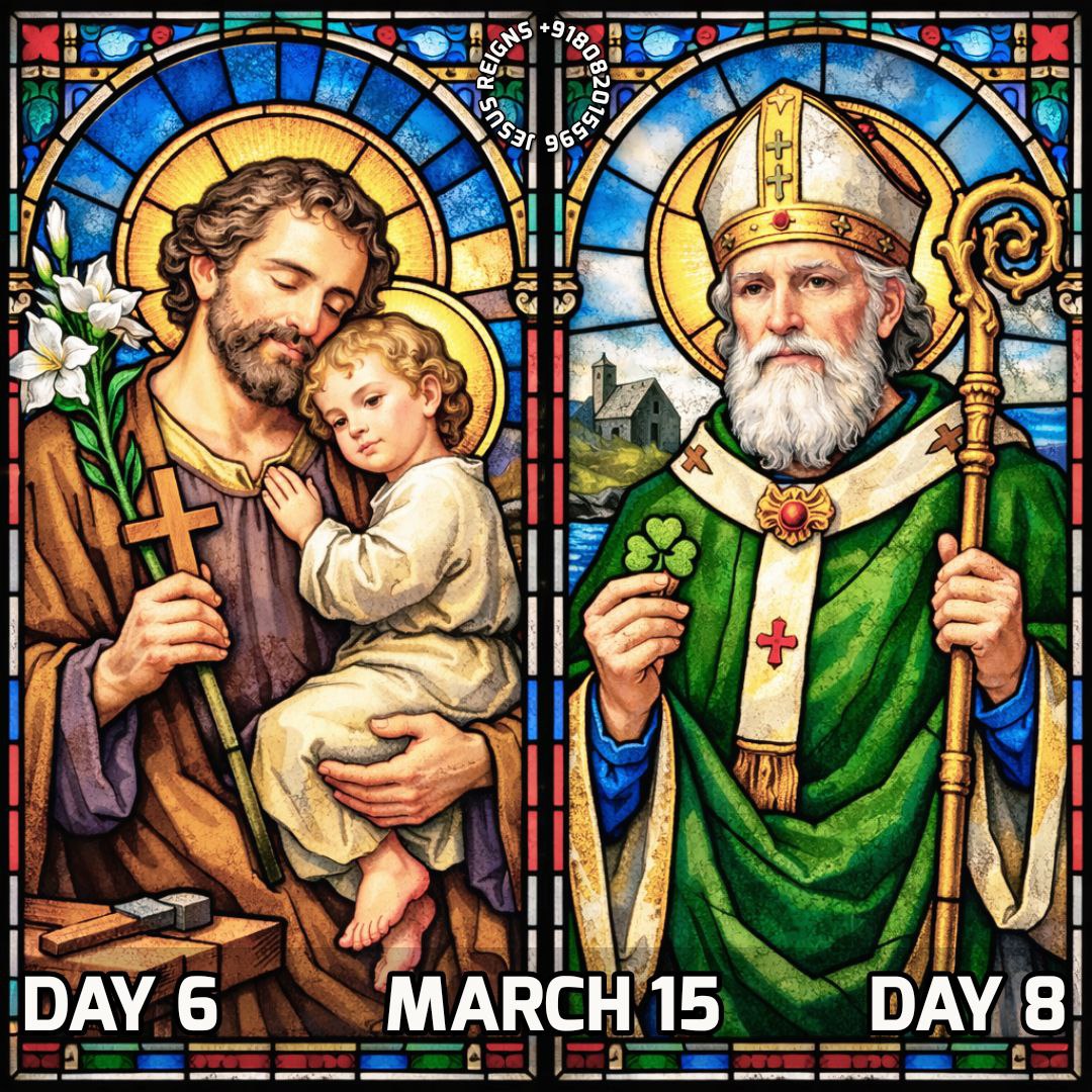 LET US PRAY: O God, Who didst send Thy blessed servant St. Patrick to instruct and save Thy people, and didst infuse into his heart so great a share of Thine own tenderness, charity, and zeal, listen, we beseech Thee, to the prayers which we now offer up in union with the prayers of this glorious patron and father in heaven, and grant us, through his intercession, the intentions of this Novena, and the grace rather to die than to offend thee. Amen.
