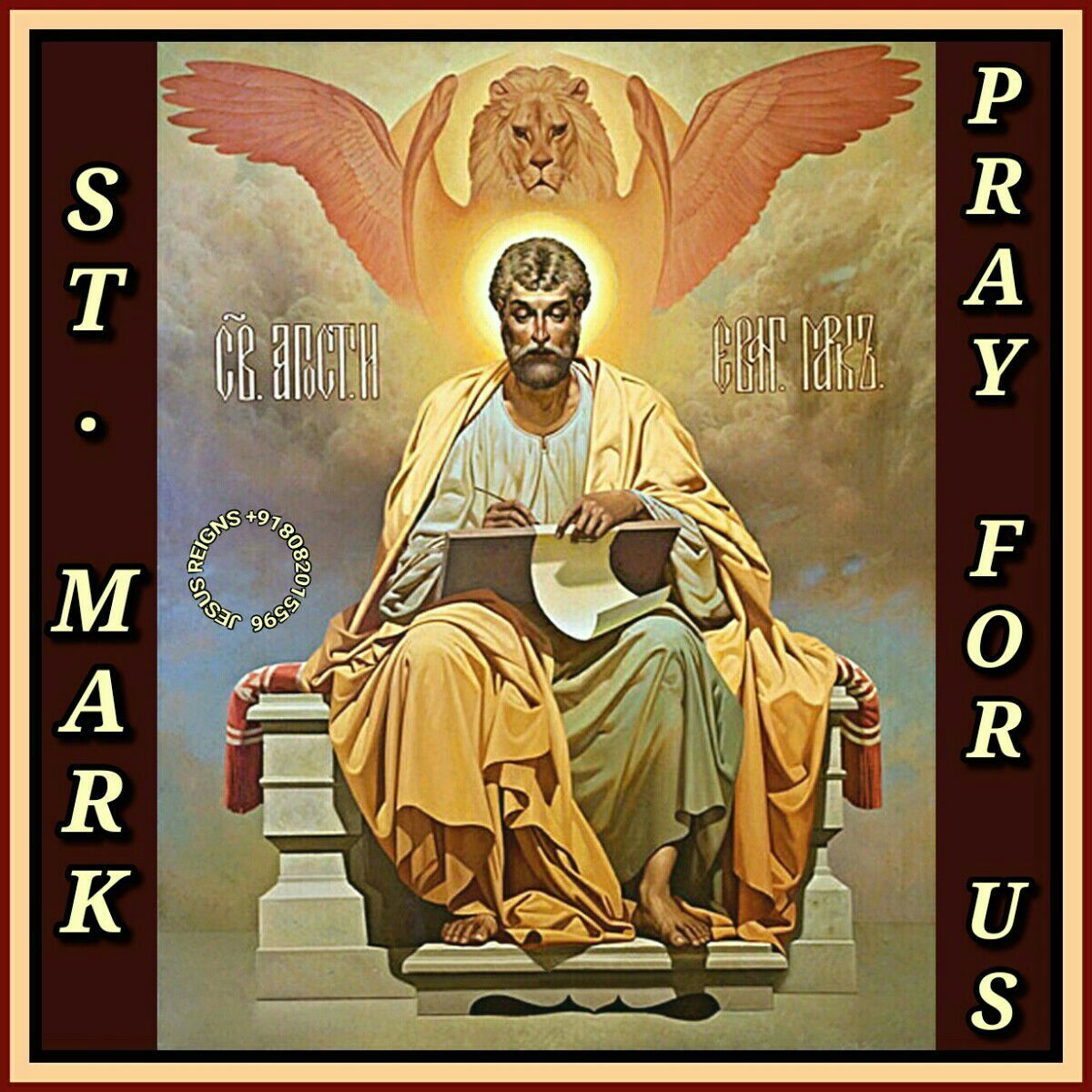PRAYER: O God, who raised up Saint Mark, your Evangelist, and endowed him with the grace to preach the Gospel, grant, we pray, that we may so profit from his teaching as to follow faithfully in the footsteps of Christ. Who lives and reigns with you in the unity of the Holy Spirit, one God, for ever and ever. Amen.