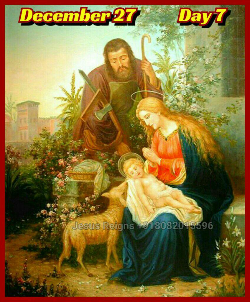 Prayer and work were the continuous occupations of the Holy Family on earth. By the work of their hands, they earned the bread that nourished them and the clothing they wore (Matthew 13:54-56). It was the Holy Family who learned to sanctify work inside and outside of the home. Idleness is a source of vice; hence Jesus, Mary, and Joseph avoided it entirely. On the other hand, work can be the seed of virtue. Holy Family, teach us to make the everyday events of our lives and work into acts of loving God. Teach us to do our work with a Christian heart which will yield our best. Holy Family, help us to see where God wills us to volunteer our time and talents for serving our brothers and sisters. Amen.