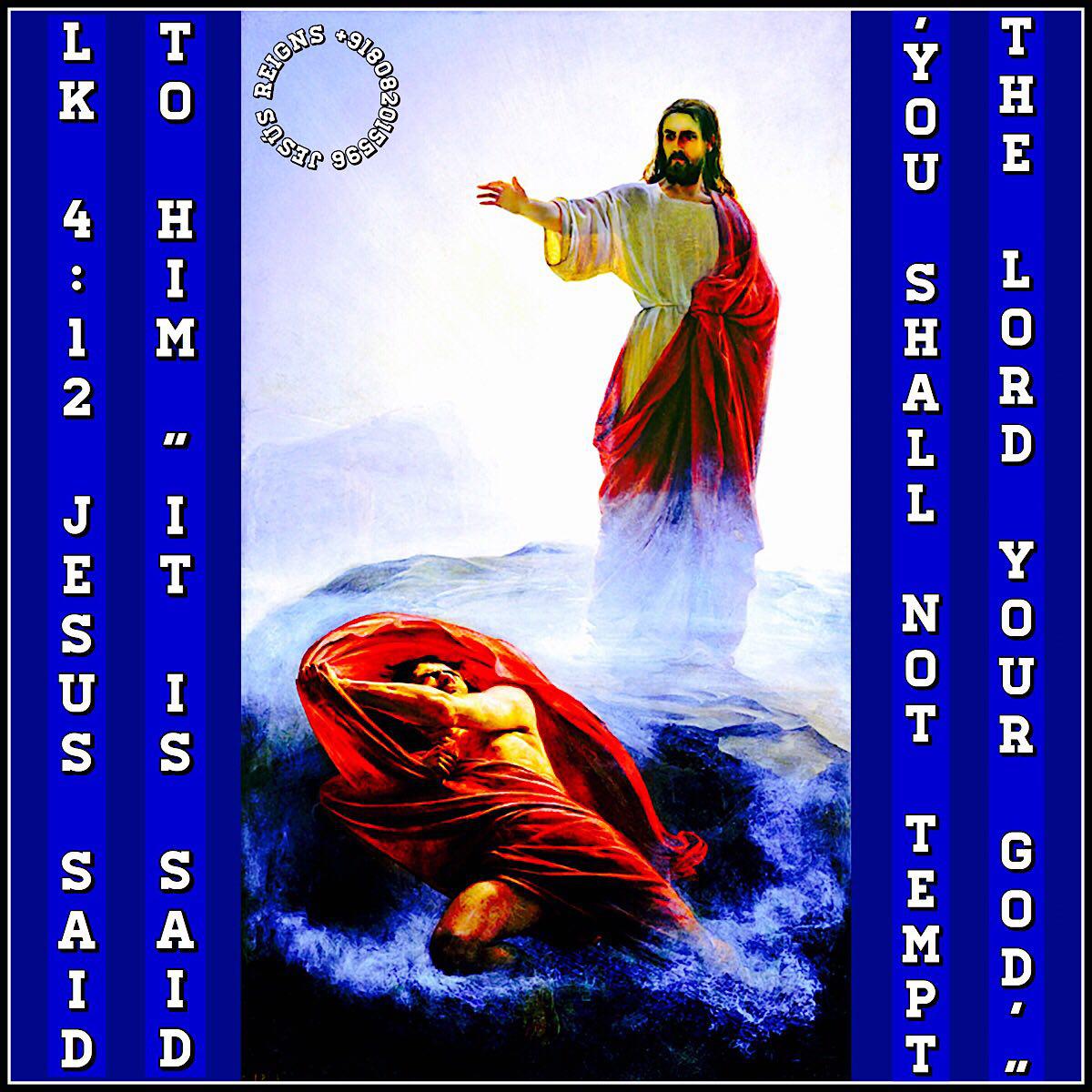 1 And Jesus, full of the Holy Spirit, returned from the Jordan, and was led by the Spirit 2 for forty days in the wilderness, tempted by the devil. And he ate nothing in those days; and when they were ended, he was hungry. 3 The devil said to him, "If you are the Son of God, command this stone to become bread." 4 And Jesus answered him, "It is written, `Man shall not live by bread alone.'" 5 And the devil took him up, and showed him all the kingdoms of the world in a moment of time, 6 and said to him, "To you I will give all this authority and their glory; for it has been delivered to me, and I give it to whom I will. 7 If you, then, will worship me, it shall all be yours." 8 And Jesus answered him, "It is written, `You shall worship the Lord your God, and him only shall you serve.'" 9 And he took him to Jerusalem, and set him on the pinnacle of the temple, and said to him, "If you are the Son of God, throw yourself down from here; 10 for it is written, `He will give his angels charge of you, to guard you,' 11 and `On their hands they will bear you up, lest you strike your foot against a stone.'" 12 And Jesus answered him, "It is said, `You shall not tempt the Lord your God.'" 13 And when the devil had ended every temptation, he departed from him until an opportune time.