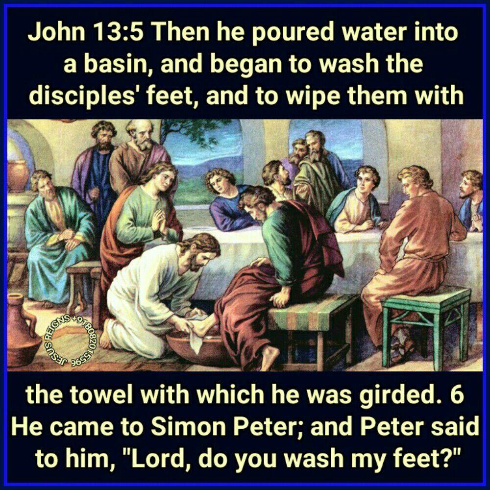 12 When he had washed their feet, and taken his garments, and resumed his place, he said to them, "Do you know what I have done to you? 13 You call me Teacher and Lord; and you are right, for so I am. 14 If I then, your Lord and Teacher, have washed your feet, you also ought to wash one another's feet. 15 For I have given you an example, that you also should do as I have done to you.