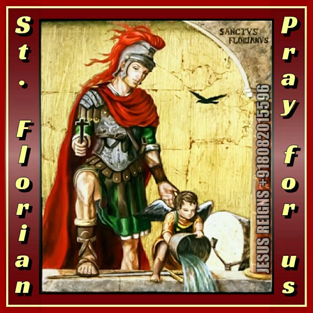 Becoming angered and fearful that Florian would convince other Christians to rebel against him and the emperor, Aquilius ordered his soldiers to burn Florian to death. When Florian surrendered himself to Aquilius' soldiers, he stood on the pyre (structure made of wood) with confidence. Rather than being fearful for his impending death, Florian challenged the soldiers to go ahead and light the fire, saying, “If you do, I will climb to heaven on the flames.” Irritated, Aquilius decided not to burn Florian, but instead ordered him to be scourged and drowned by throwing him into the Enns River with a rock tied around his neck. St. Florian died 304 AD. His body was recovered and he was given a proper burial.
