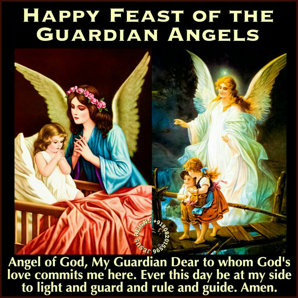 The idea that each soul has assigned to it a personal guardian angel has been long accepted by the Church and is a truth of our faith. From the Gospel of today's liturgy we read: "See that you do not despise one of these little ones, for I say to you that their angels in heaven always look upon the face of my heavenly Father" (Matthew 18:10). The Catechism of the Catholic Church states that "the existence of the spiritual, non-corporeal beings that Sacred Scripture usually calls 'angels' is a truth of faith (328)." From our birth until our death, man is surrounded by the protection and intercession of angels, particularly our guardian angel: "Beside each believer stands an angel as protector and shepherd leading him to life (336)." The Church thanks God for our helpers, the angels, particularly on this feast day and September 29 which is the feast of Saint Michael, Saint Gabriel, and Saint Raphael, archangels. Today's feast appeared in Spain during the sixteenth century. It was extended to the universal Church and made obligatory in 1670.