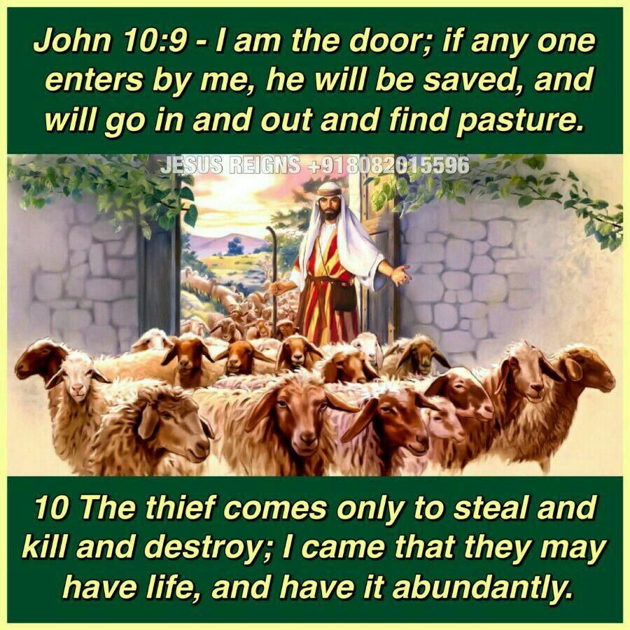 1 "Truly, truly, I say to you, he who does not enter the sheepfold by the door but climbs in by another way, that man is a thief and a robber; 2 but he who enters by the door is the shepherd of the sheep. 3 To him the gatekeeper opens; the sheep hear his voice, and he calls his own sheep by name and leads them out. 4 When he has brought out all his own, he goes before them, and the sheep follow him, for they know his voice. 5 A stranger they will not follow, but they will flee from him, for they do not know the voice of strangers." 6 This figure Jesus used with them, but they did not understand what he was saying to them. 7 So Jesus again said to them, "Truly, truly, I say to you, I am the door of the sheep. 8 All who came before me are thieves and robbers; but the sheep did not heed them. 9 I am the door; if any one enters by me, he will be saved, and will go in and out and find pasture. 10 The thief comes only to steal and kill and destroy; I came that they may have life, and have it abundantly.